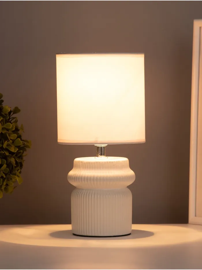Эта настольная лампа станет стильным дополнением вашего интерьера, создавая уютную атмосферу и мягкое освещение. Белое керамическое основание и цилиндрический абажур в светлых тонах легко впишутся в любой интерьер, будь то рабочий кабинет или спальня.