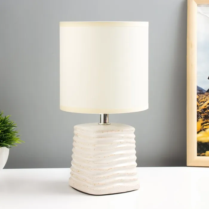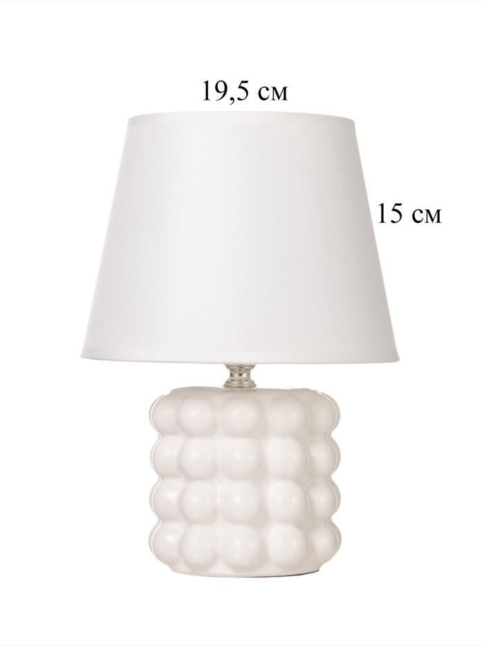 Гармоничное сочетание современного дизайна и функциональности. Белая керамическая основа и текстильно-пластмассовый абажур создают легкий и воздушный образ, который прекрасно дополнит любой интерьер. Лампа идеально подходит для создания уютной атмосферы в спальне, гостиной или рабочем кабинете.