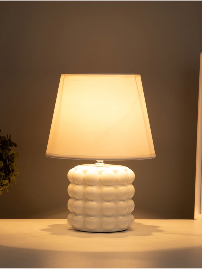 - Белоснежная керамическая основа и текстильно-пластмассовый абажур придают лампе утончённый и современный вид, который подчеркнет стиль вашего интерьера.