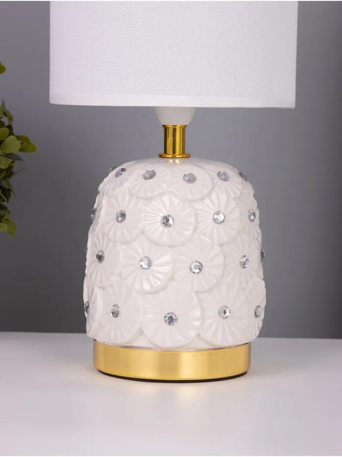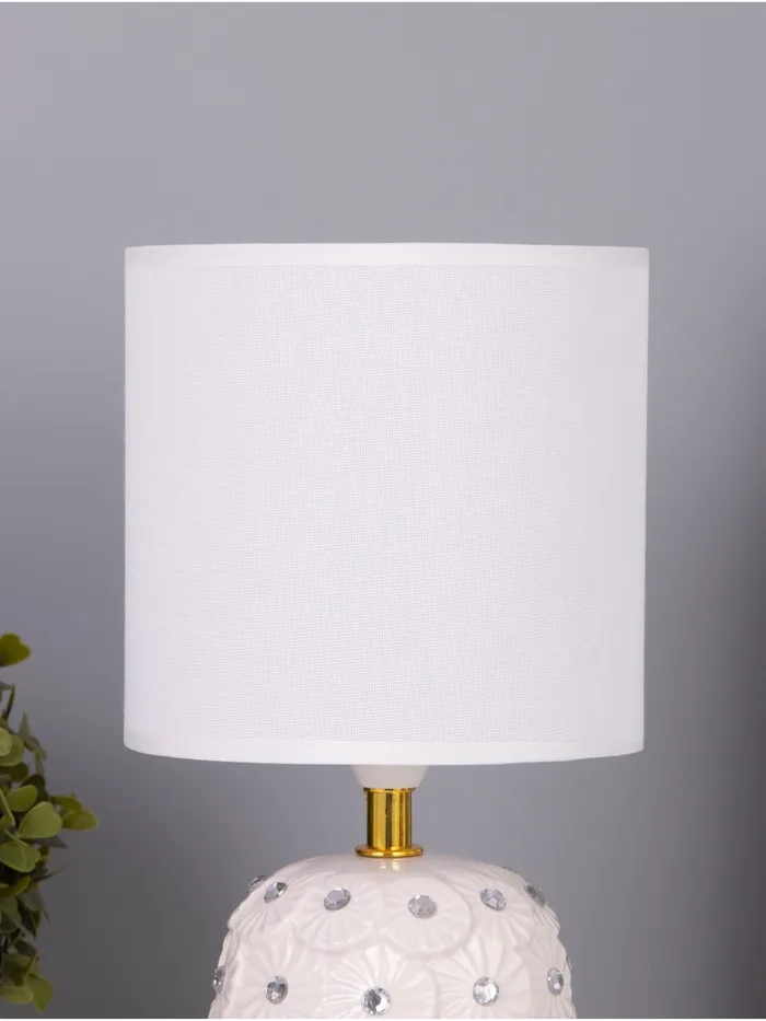 Эта настольная лампа станет стильным акцентом в вашем интерьере, обеспечивая мягкое и комфортное освещение. Белоснежное керамическое основание и цилиндрический абажур в светлых тонах гармонично впишутся в любое пространство, добавляя нотку элегантности.
