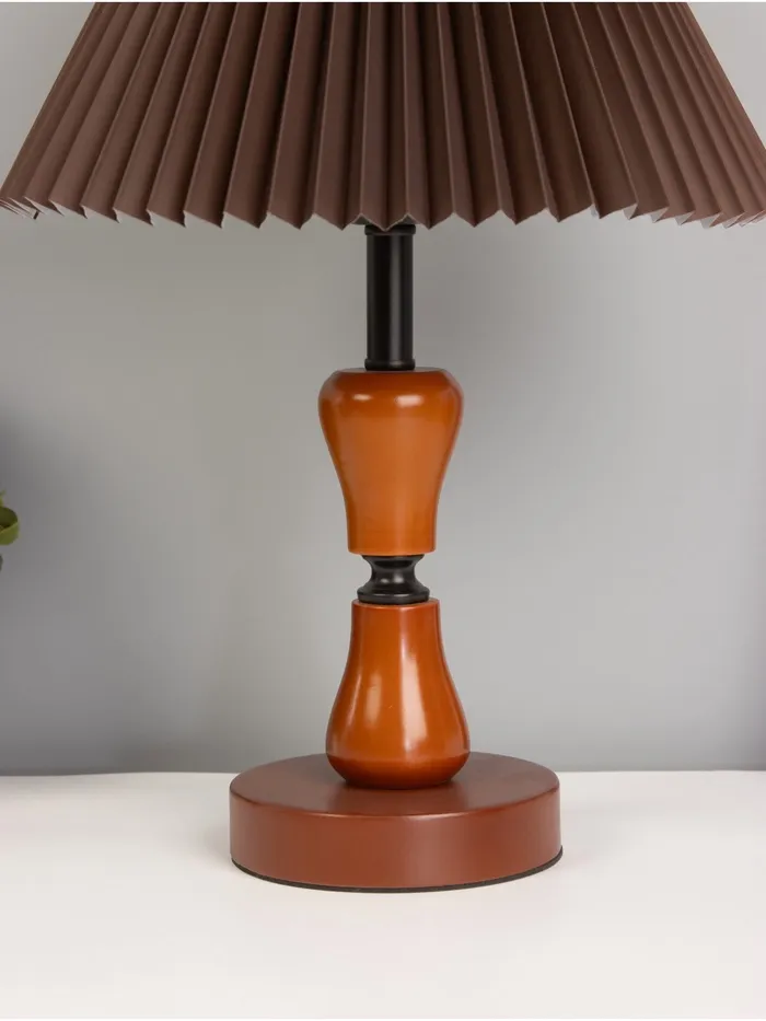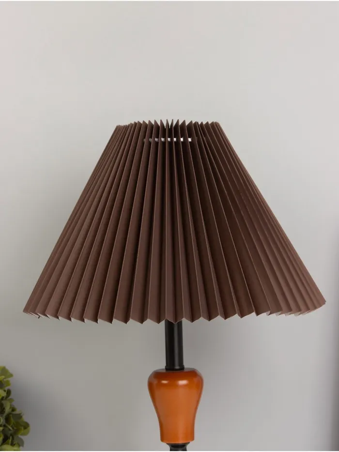 Стильный настольный светильник с абажуром станет отличным акцентом в вашем интерьере. С высотой 40 см и размерами 27х27 см, он прекрасно вписывается в любое пространство, создавая уютную атмосферу. Коричневое и черное основание из металла и дерева в сочетании с темным абажуром придает изделию современный и элегантный вид.