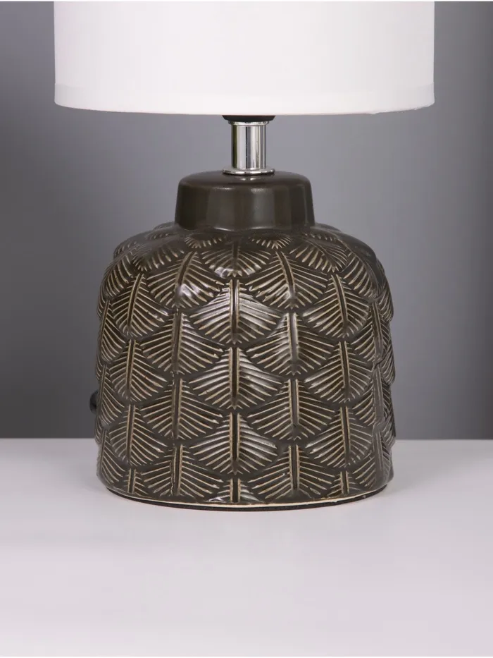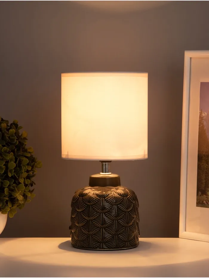 Эта настольная лампа станет отличным выбором для создания уютной атмосферы в вашем доме. Темно-зеленое керамическое основание и белый цилиндрический абажур идеально сочетаются, добавляя стиль и элегантность в любое пространство. Она подходит как для рабочего стола, так и для прикроватной тумбочки, обеспечивая мягкое и комфортное освещение.