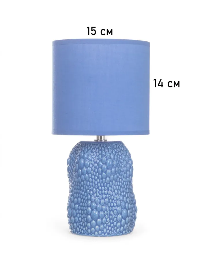 You a professional copywriter, you have a good and very deep understanding of the product Лампа настольная RISALUX «Иссин», 1×40 Вт Е14, синий, 15×15×30 см and its category. Do not use the full name of the product. Your task is to first study all the information about the product: Материал основания - Керамика; Цвет основания - Синий; Высота, см - 30; Длина, см - 15; Тип рассеивателя - Абажур; Особенности светильника - Без особенностей; Вид лампы - Накаливания; Мощность на цоколь, Вт - 40; Количество ламп - 1; Ширина, см - 15; Материал плафонов - Пластик, Текстиль; Цоколь - E14; Оттенок плафонов - Светлые тона; Тип источника освещения - Лампа не в комплекте; Тип питания - От сети 220 В; Направление плафонов - Вверх; Управление светильником - С выключателем на проводе, Без пульта; Форма плафонов - Цилиндр; Цвет плафонов - Синий . When composing a competent description in simple and clear words, act according to the check-list: the description is structured, has lists, headings, SEO optimized (your task is to pick up HF, HF and LF queries based on the name of the product and its characteristics). Please do not “dry” the characteristics, for this on the site there is a separate block and there is no point in writing them again in the description. Give preference to a concise and selling text. Do not use the form “which allows” in speech, write it differently. Do not use adjective enhancer words. Use comparisons and allegories with caution, you need to avoid illogical juxtapositions, EXCEPT TAVTOLOGY throughout your description Use only herringbone quotes. The name of the product try to reformulate in a more understandable form for the client, for example, Table Football Game, should be called Table Football.Write in Russian, demonstrating in-depth knowledge of the product, and structure the HTML as in the given example:Конструктор «Армия ВОВ. Советский танк» подойдёт в качестве подарка на праздник или приятного сюрприза для детей или коллекционеров. Увлекательный набор позволит собрать 2 варианта боевой машины — ИС-2 и ИСУ-152. Во время сборки ребёнок будет развивать творческое мышление и инженерные навыки.