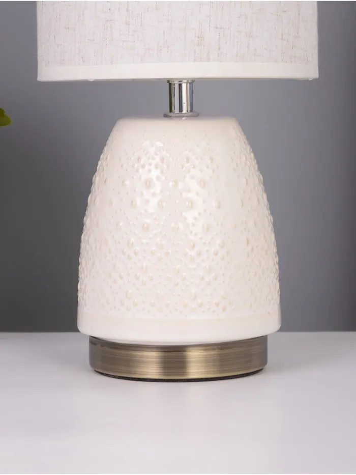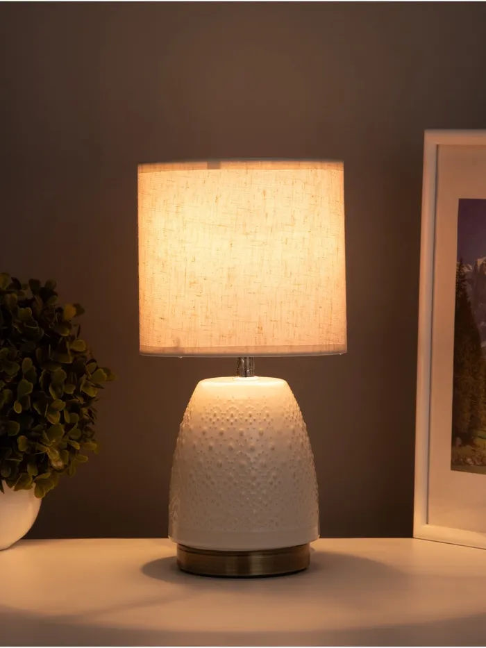Эта настольная лампа станет отличным дополнением вашего интерьера, внося нотку уюта и стиля. С керамическим основанием и элегантным абажуром, она прекрасно подходит для освещения рабочего стола или прикроватной тумбочки.
