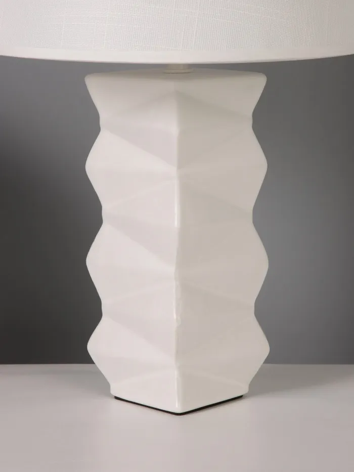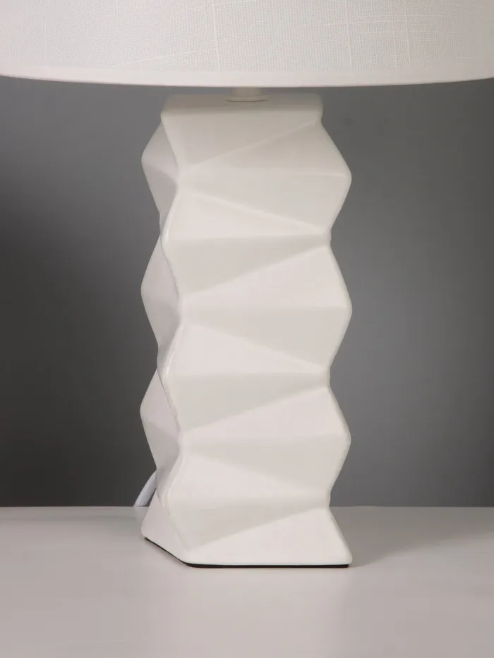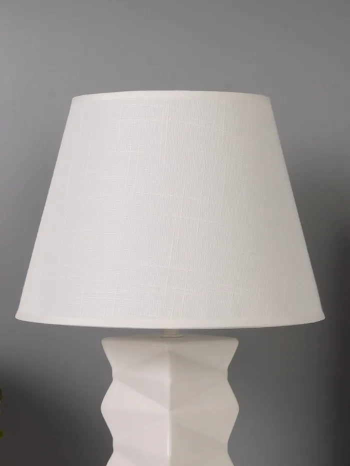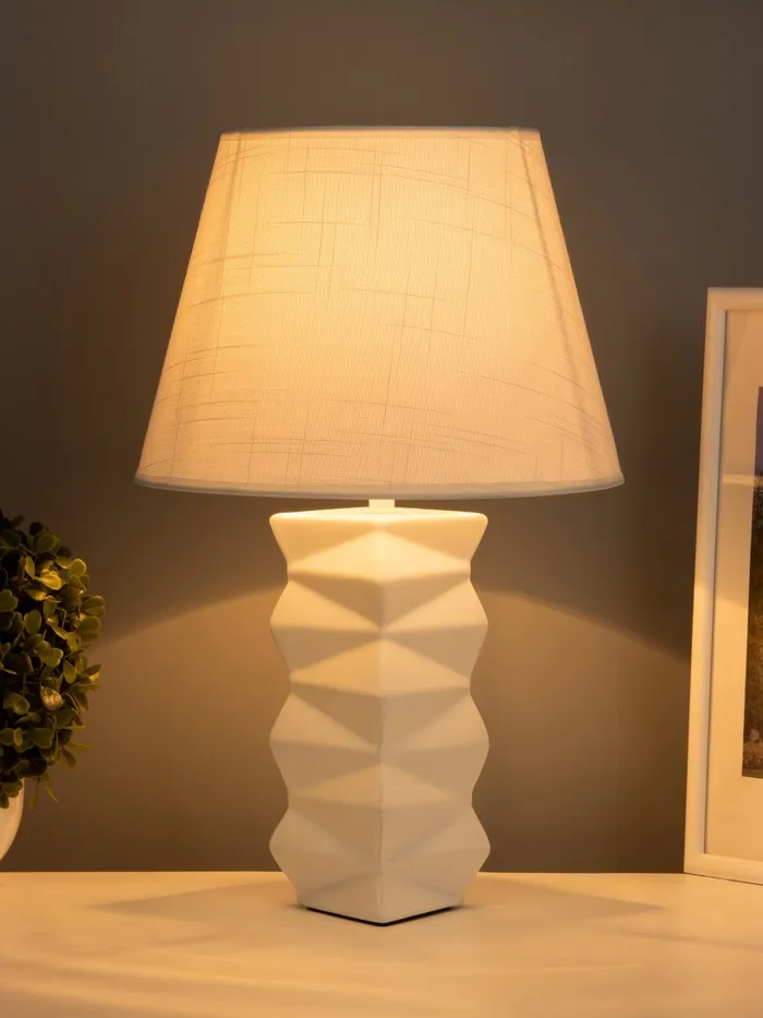 - Элегантный дизайн: белое основание и трапециевидная форма абажура создают стильный и современный вид, идеально вписываясь в любой интерьер.