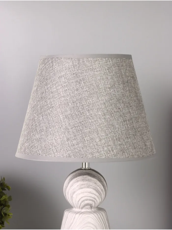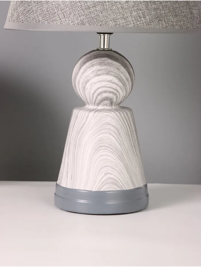 Эта настольная лампа станет стильным акцентом в вашем интерьере, добавляя современный штрих и уют в любое пространство. С серым керамическим основанием, она прекрасно подойдет для освещения рабочего стола или прикроватной тумбочки.