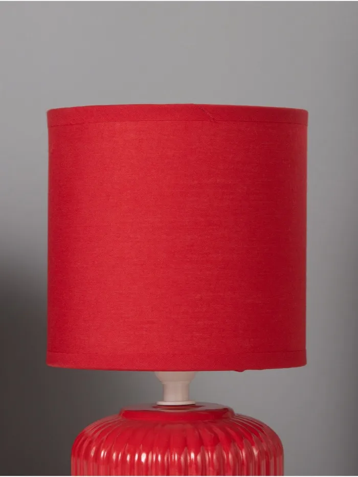 Лампа выполнена из качественных материалов, что подчеркивает долговечность и стиль. Ребристая текстура основания придает уникальный вид, гладкий абажур создает элегантный контраст. Красный цвет абажура не только радует глаз, но и гармонично сочетается с различными стилями интерьера.