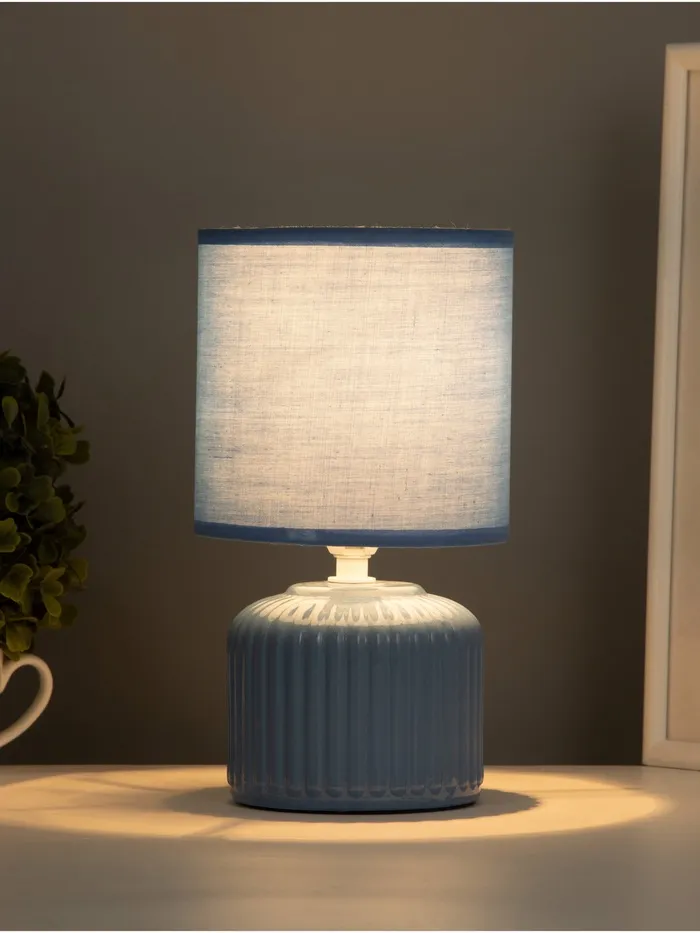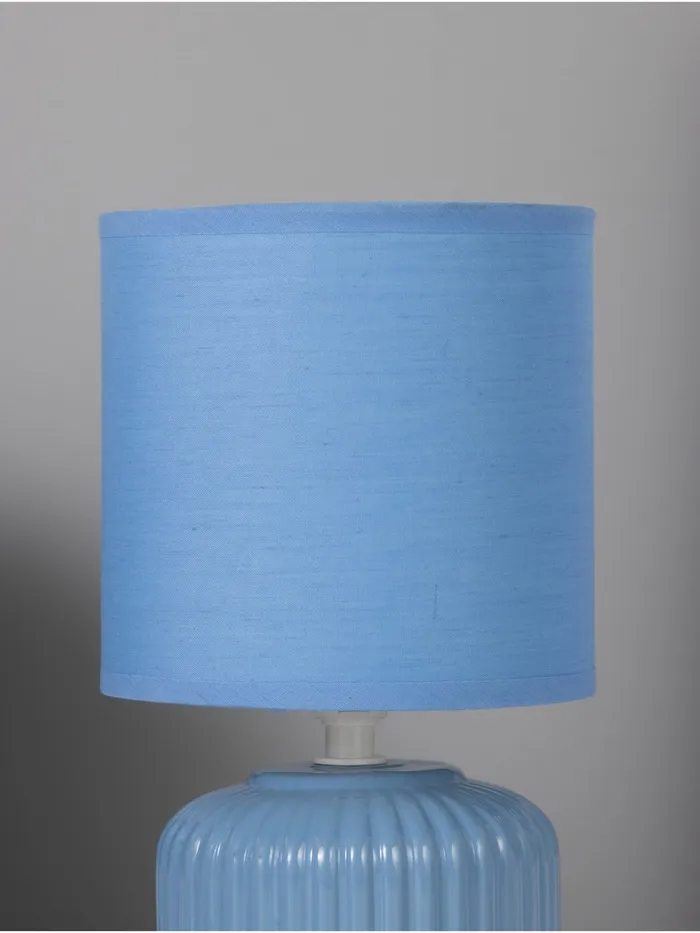 Лампа выполнена из качественных материалов, что подчеркивает долговечность и стиль. Ребристая текстура основания придает уникальный вид, гладкий абажур создает элегантный контраст. Голубой цвет абажура не только радует глаз, но и гармонично сочетается с различными стилями интерьера.