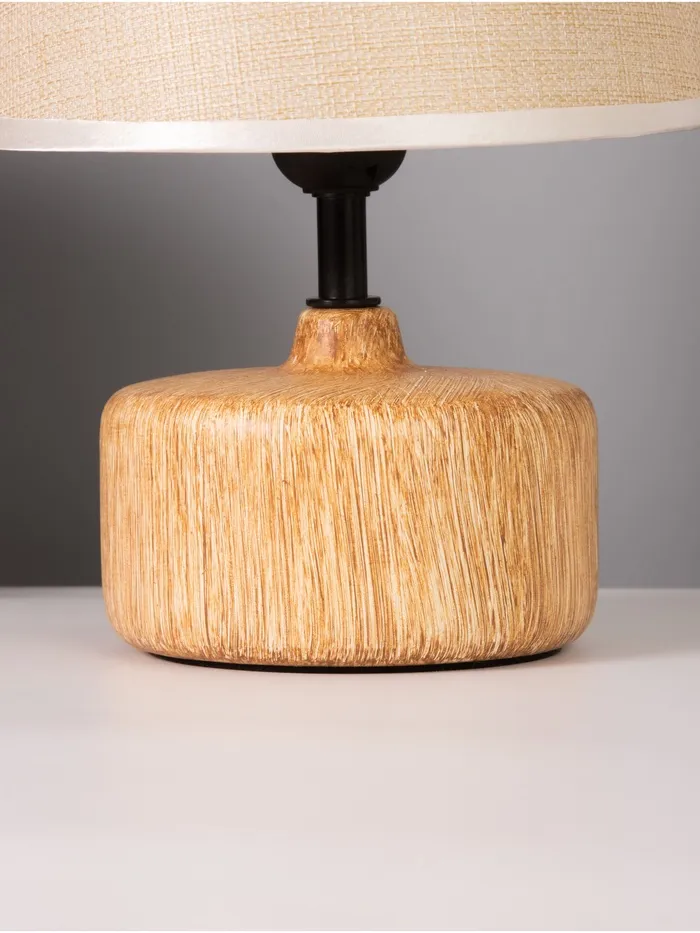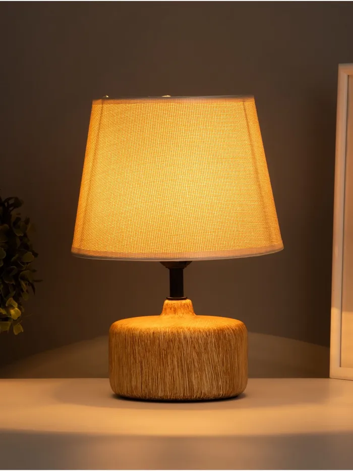 Эта настольная лампа станет стильным акцентом в вашем доме, добавляя уют и современный вид в любое пространство. С коричневым керамическим основанием и бежевым абажуром, она идеально подходит для освещения рабочего стола или прикроватной тумбочки.