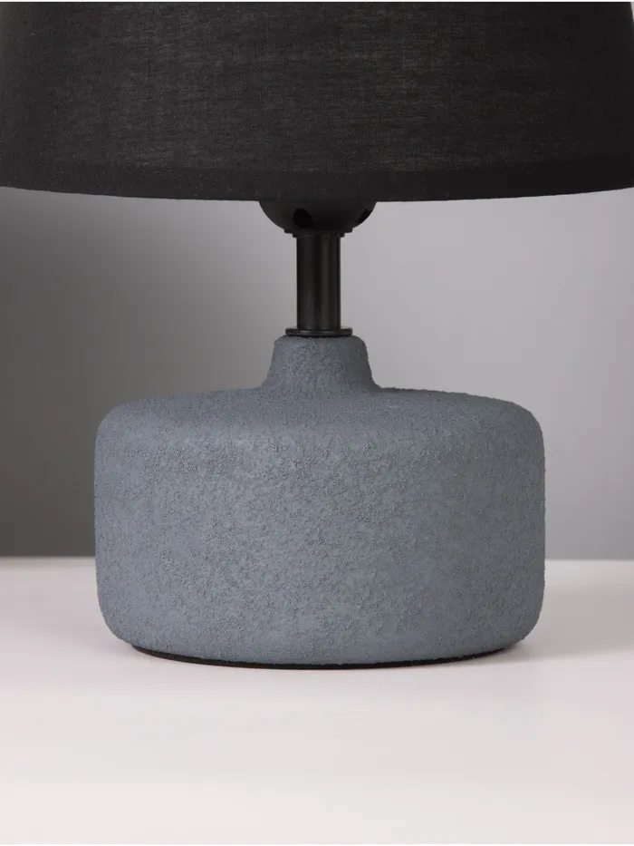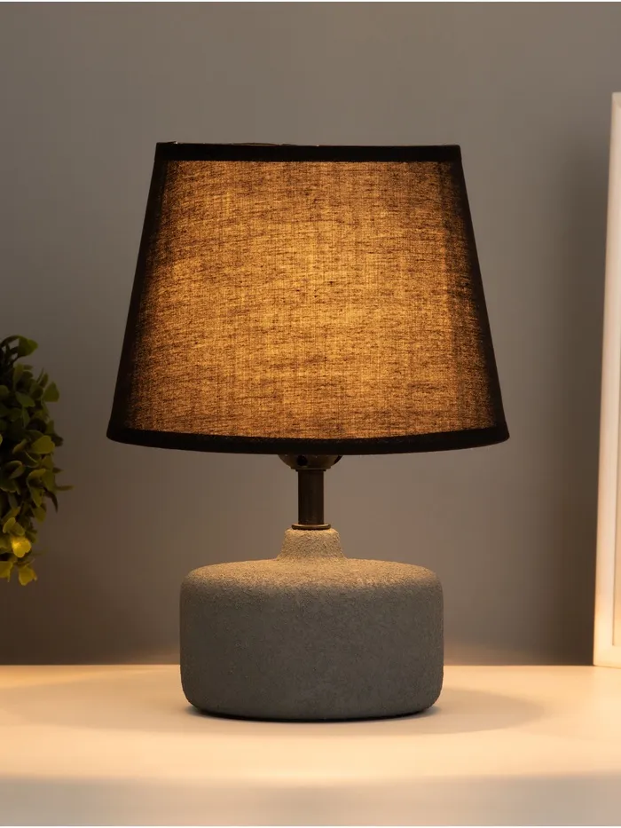 Эта настольная лампа станет стильным дополнением вашего интерьера, привнося элегантность и уют в любое пространство. С серым керамическим основанием и черным абажуром, она идеально подходит для освещения рабочего стола или прикроватной тумбочки.