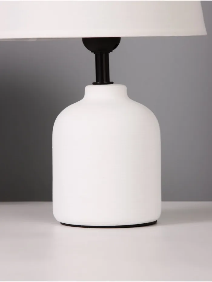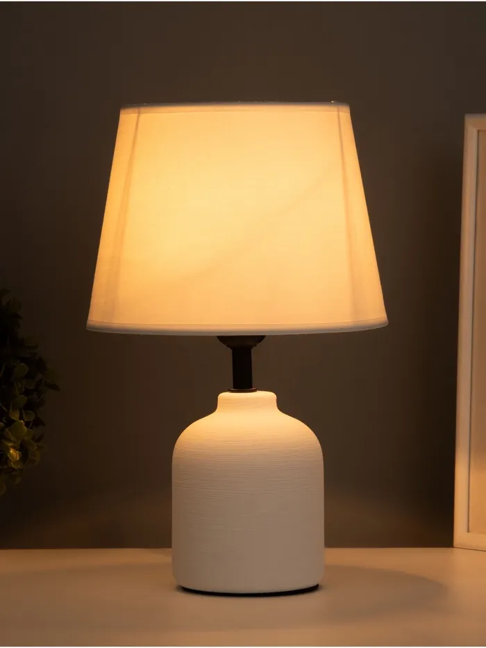 Эта настольная лампа станет идеальным решением для создания уютной атмосферы в вашем доме. С белым керамическим основанием и светлым абажуром, она прекрасно дополнит любой интерьер, добавляя изящество и стиль.