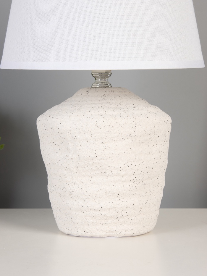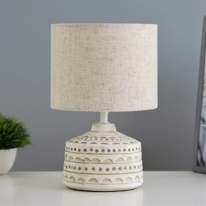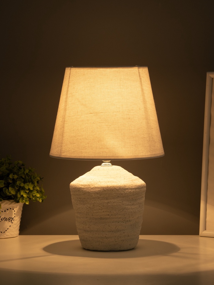 Создайте уютный уголок с теплым светом. Настольная лампа «Песочные замки» — это классический светильник с керамическим основанием и пластиковым абажуром. Лампа дает мягкое боковое освещение, комфортное для чтения и работы.