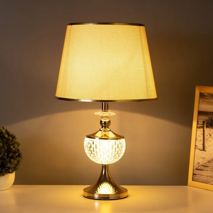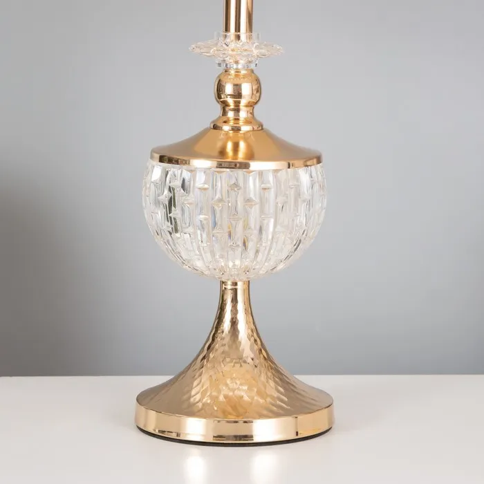 - Роскошный дизайн: золотое основание и абажур из текстиля создают изысканный и стильный вид, идеально подходящий для классических и современных интерьеров.