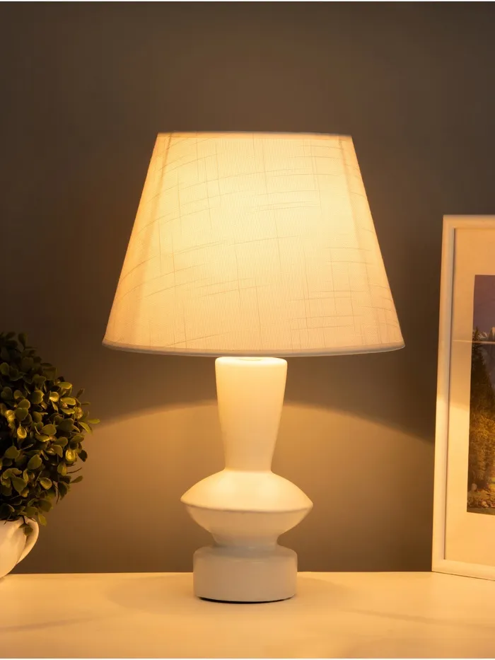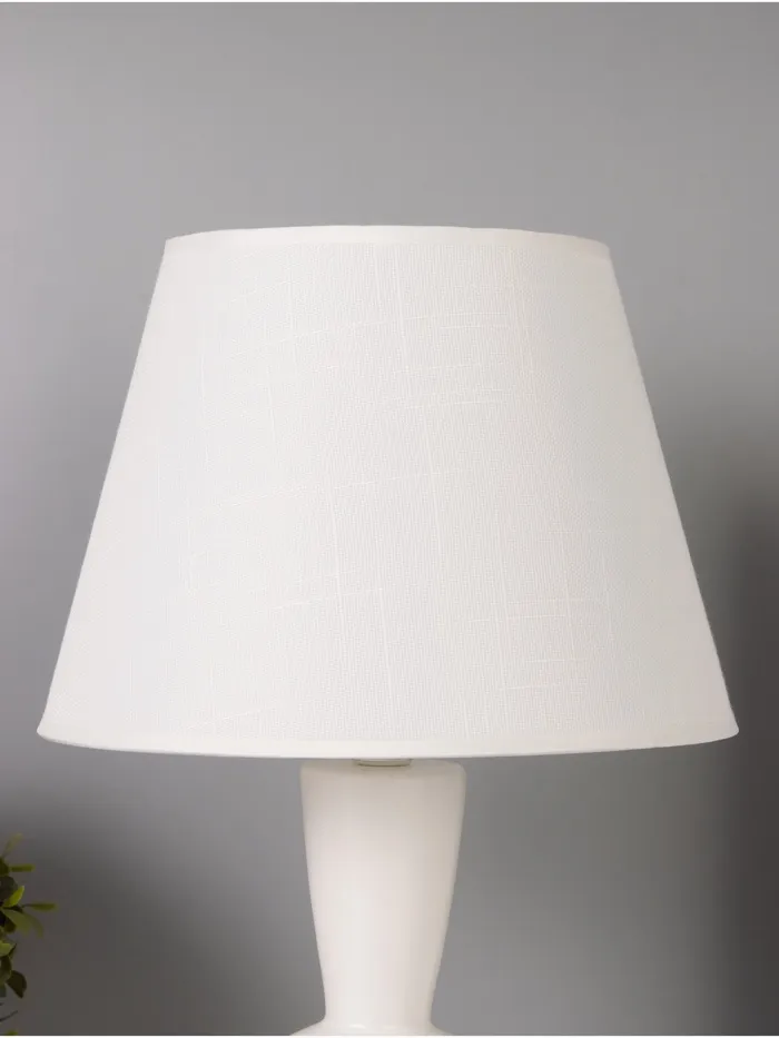 - Элегантный дизайн: белое керамическое основание и абажур в светлых тонах создают стильный и современный вид, идеально вписываясь в любой интерьер.