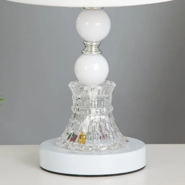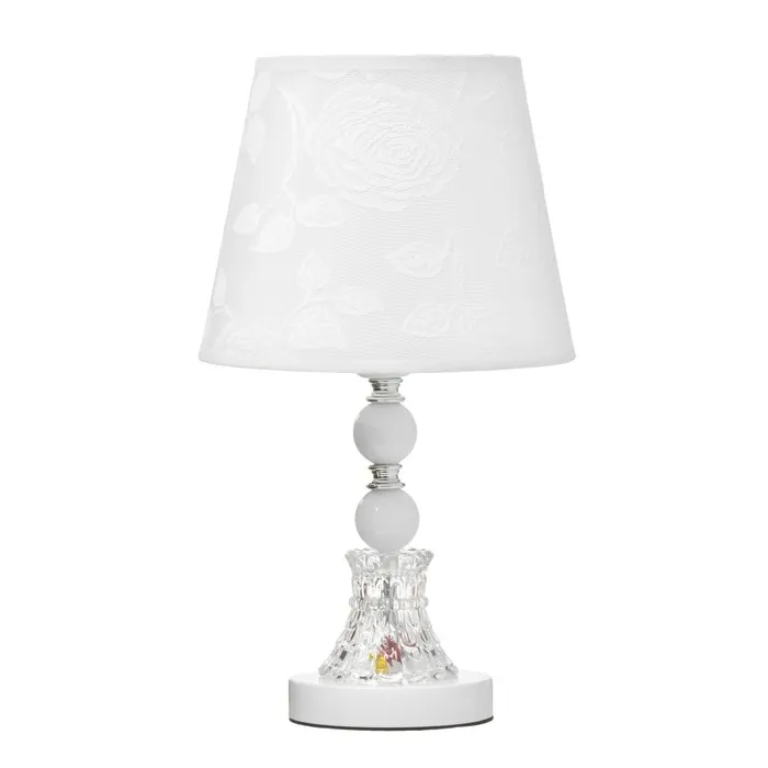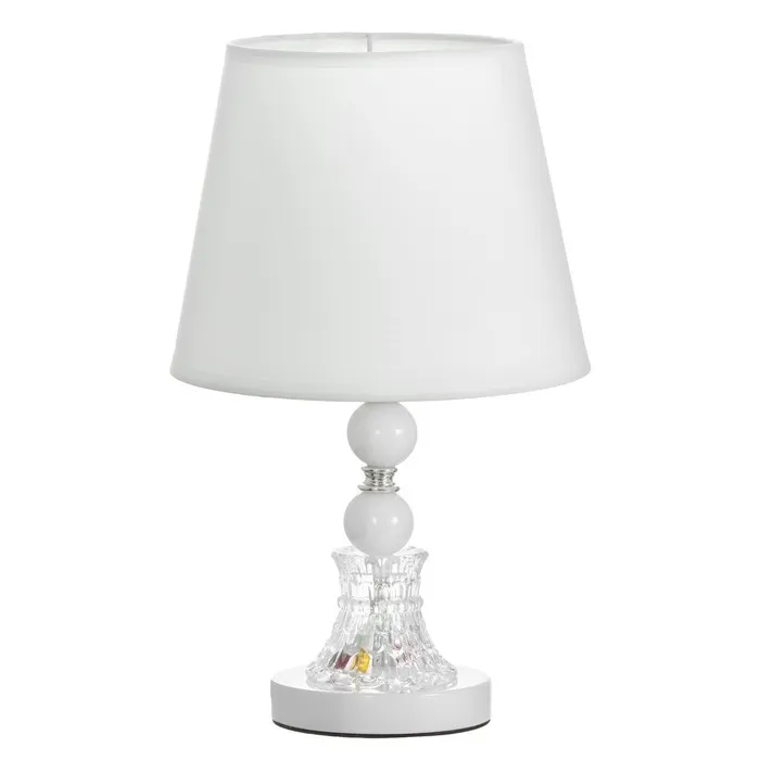 Эта настольная лампа с белым металлическим основанием и элегантным абажуром станет изысканным дополнением вашего интерьера. Высота 39,5 см и ширина 23 см делают её идеальным выбором для размещения на столе или тумбочке. Лампа создает мягкий свет, подходящий для чтения или создания уютной атмосферы.