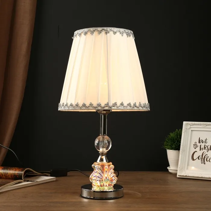 Эта настольная лампа с хромированным основанием и белым текстильным абажуром станет стильным акцентом в вашем интерьере. Высота 45 см и ширина 28 см делают её идеальным выбором для размещения на столе или тумбочке. Лампа создает мягкий свет, подходящий для чтения или создания уютной атмосферы.