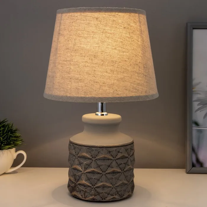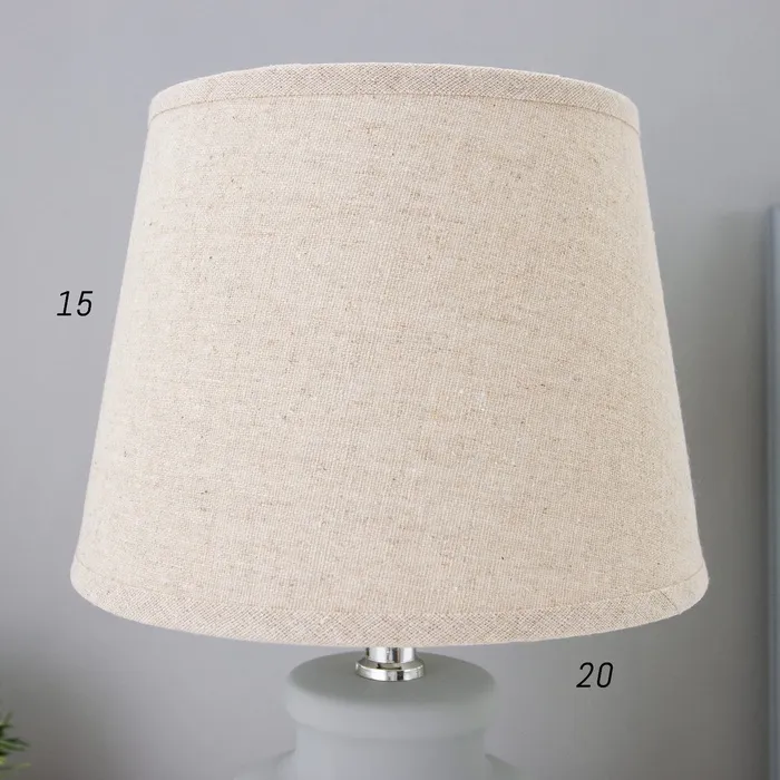 - Абажур светлых тонов из текстиля и пластика обеспечивает мягкое рассеивание света, создавая приятную атмосферу.