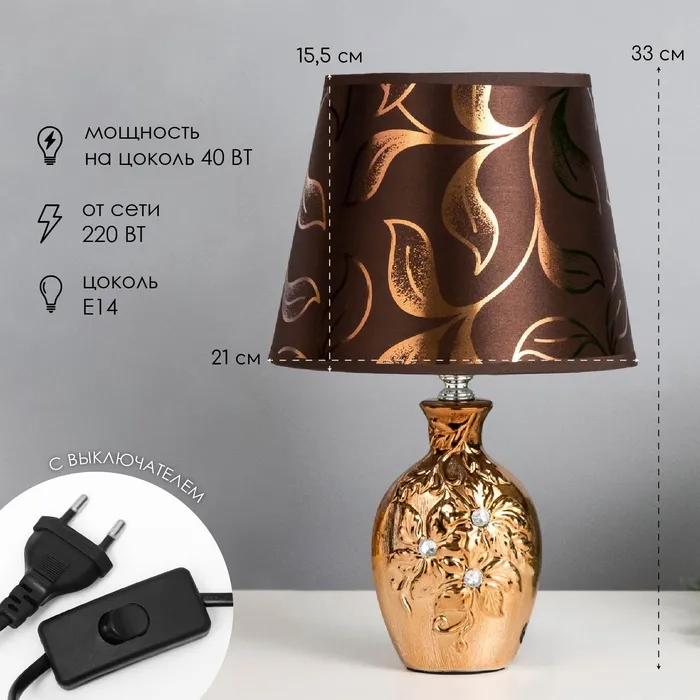 Лампа настольная с абажуром Е14 «Цветение» 33×20×16 см — Характеристики