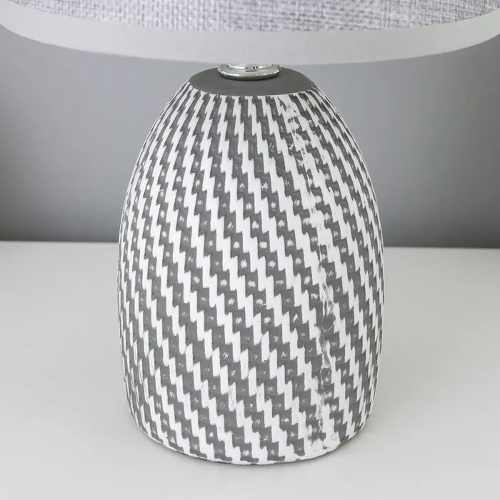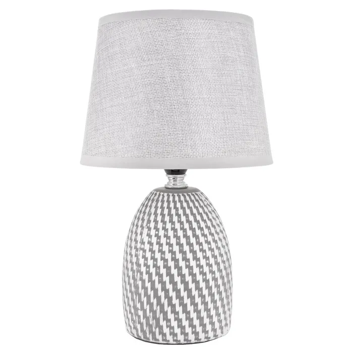 Настольная лампа с серым абажуром станет стильным акцентом в вашем интерьере. С высотой 29 см и керамическим основанием, она прекрасно вписывается в классические и современные пространства. Трапециевидный текстильный абажур мягко рассеивает свет, создавая уютную атмосферу.