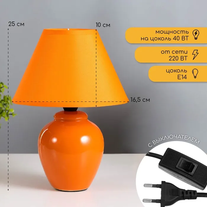 Лампа настольная с абажуром "Ваза" E14, 220V 17х17х25 см RISALUX — Характеристики