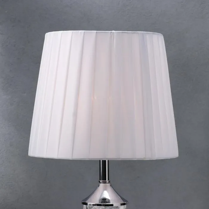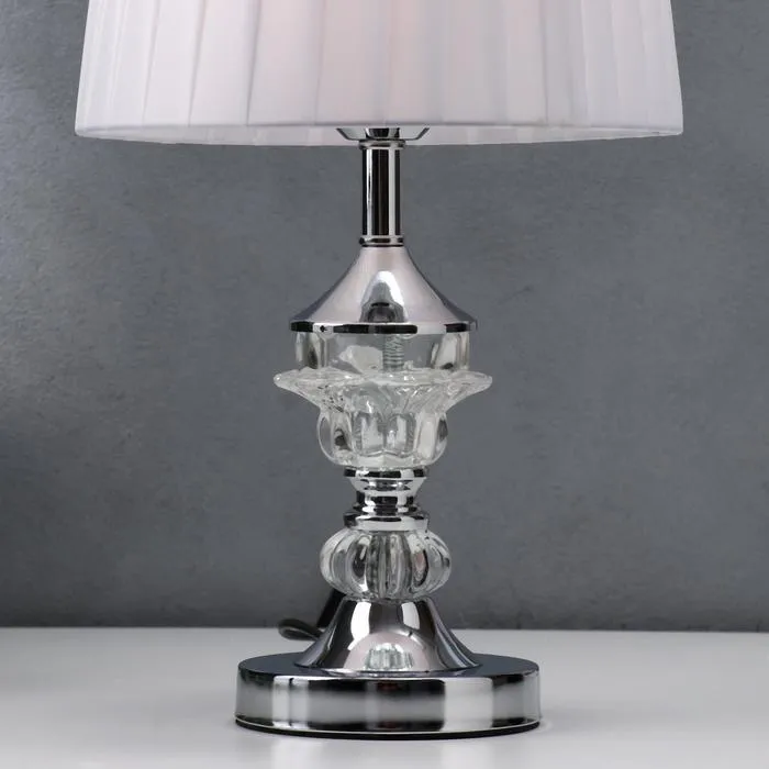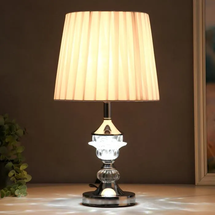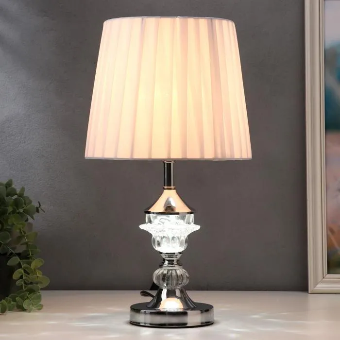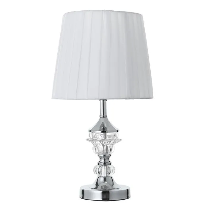 Стильная настольная лампа станет идеальным дополнением вашего интерьера. С высотой 43 см и хромированным основанием, она привносит современный акцент в любое пространство. Текстильный абажур в светлых тонах мягко рассеивает свет, создавая комфортную атмосферу для чтения или отдыха.
