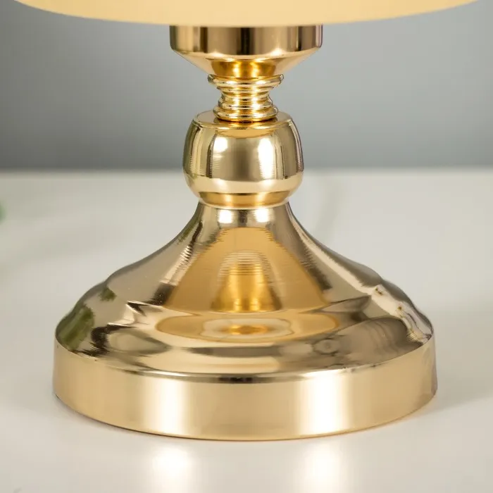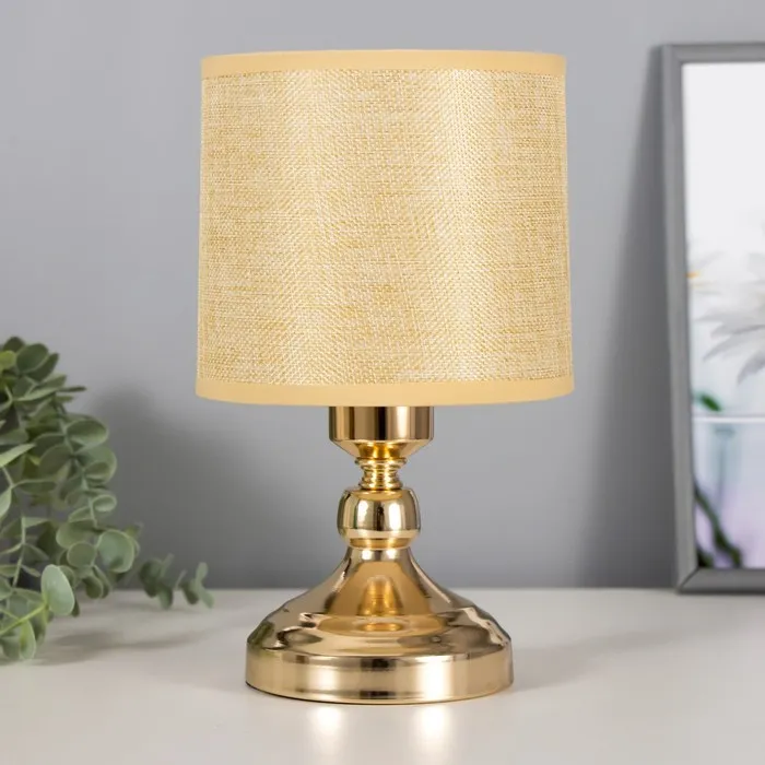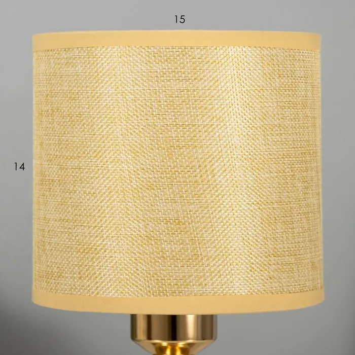 Эта настольная лампа с золотым основанием и текстильным абажуром станет изысканным дополнением вашего интерьера. Высота 28 см и ширина 15 см делают её отличным выбором для размещения на столе или прикроватной тумбочке. Лампа создает мягкий свет, идеально подходящий для чтения или создания уютной атмосферы.