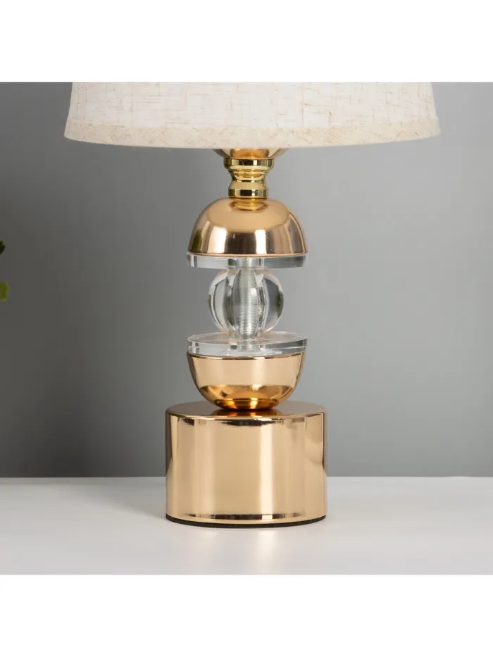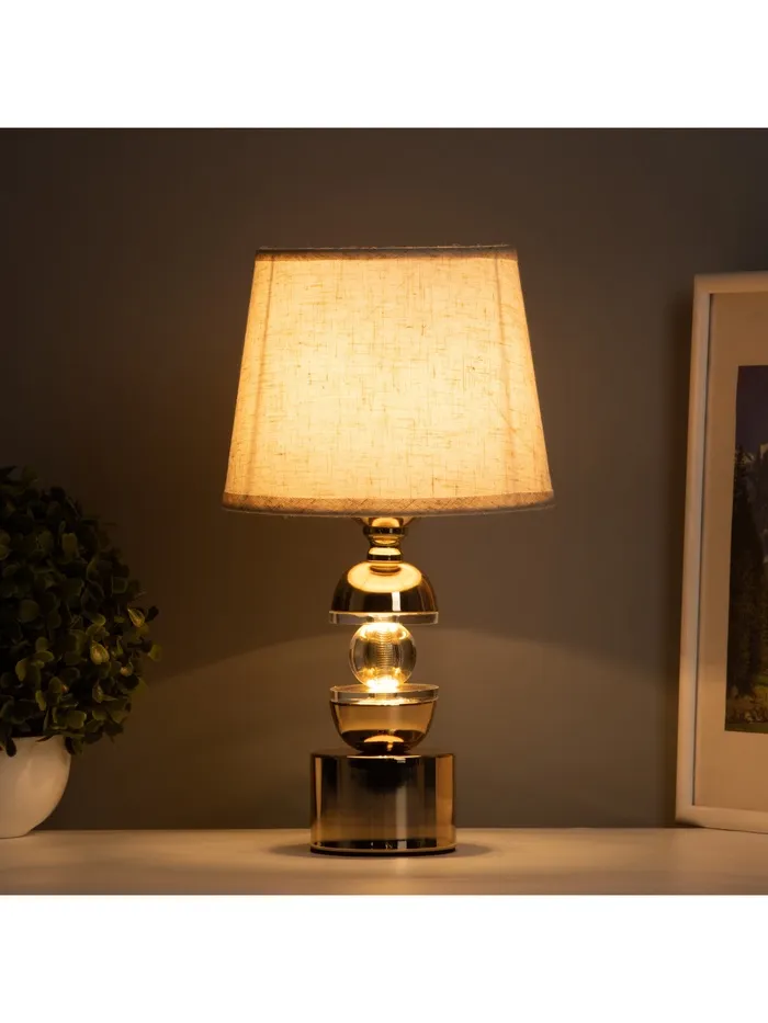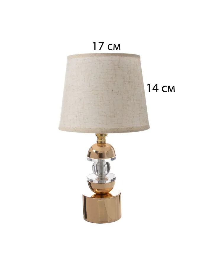 Эта настольная лампа с золотым основанием и прозрачными элементами станет изысканным акцентом в вашем интерьере. Высота 29,5 см и компактные размеры 18×18 см делают её идеальным выбором для стола или прикроватной тумбочки. Лампа создает мягкий свет, подходящий для чтения и создания уютной атмосферы.
