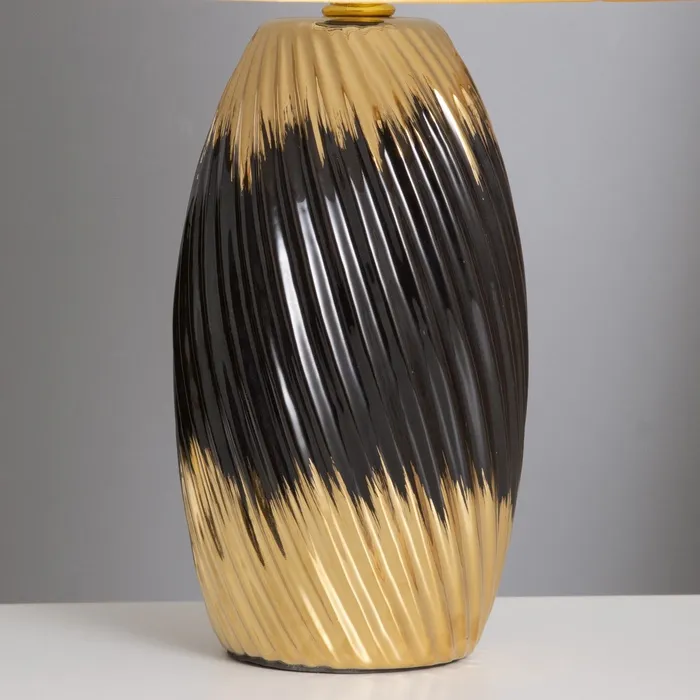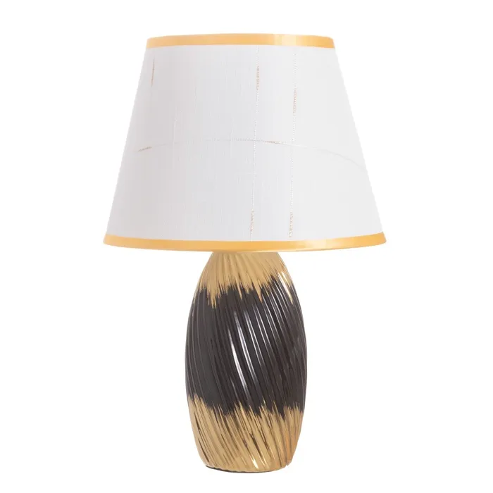 Эта настольная лампа с элегантным сочетанием черного и золотого цветов станет стильным дополнением вашего интерьера. Высота 40 см и размеры 24×24 см делают её идеальным выбором для рабочего стола или прикроватной тумбочки. Лампа создает мягкий свет, подходящий для чтения и создания уютной атмосферы.