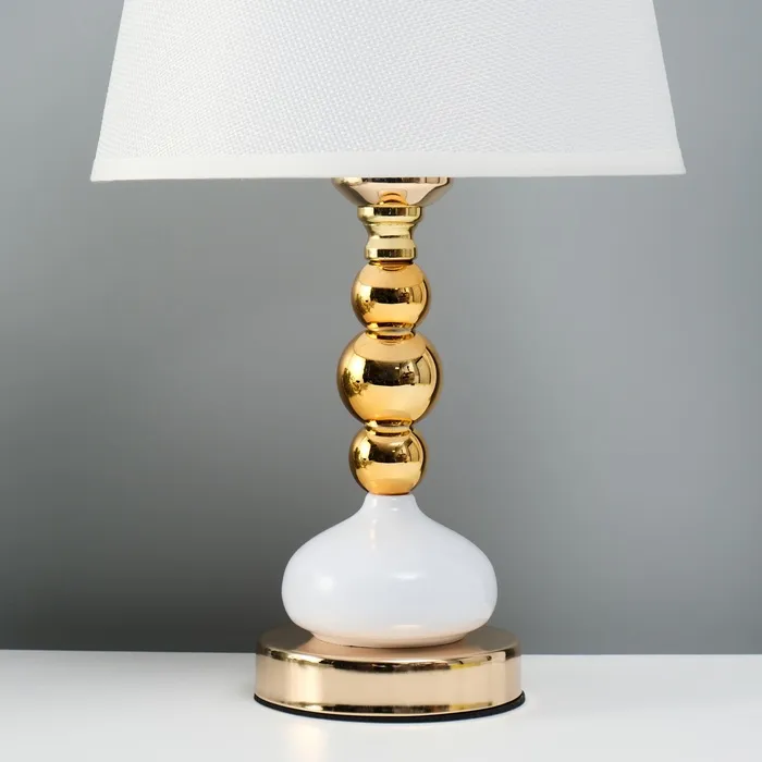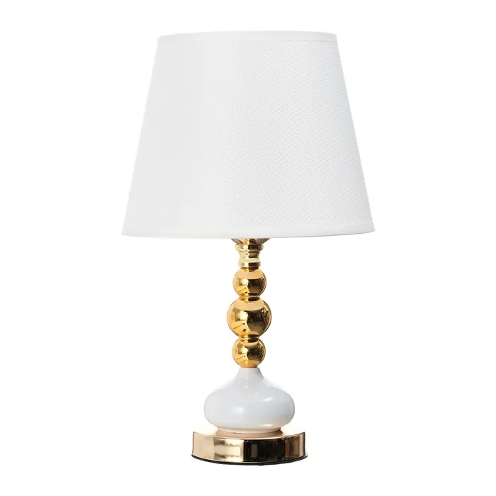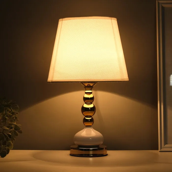 Эта настольная лампа в золотом исполнении станет изысканным дополнением вашего интерьера. Она отлично подходит для создания уютной атмосферы в любых помещениях, будь то спальня, гостиная или кабинет. Металлическое основание и текстильный абажур придают ей стильный и современный вид.