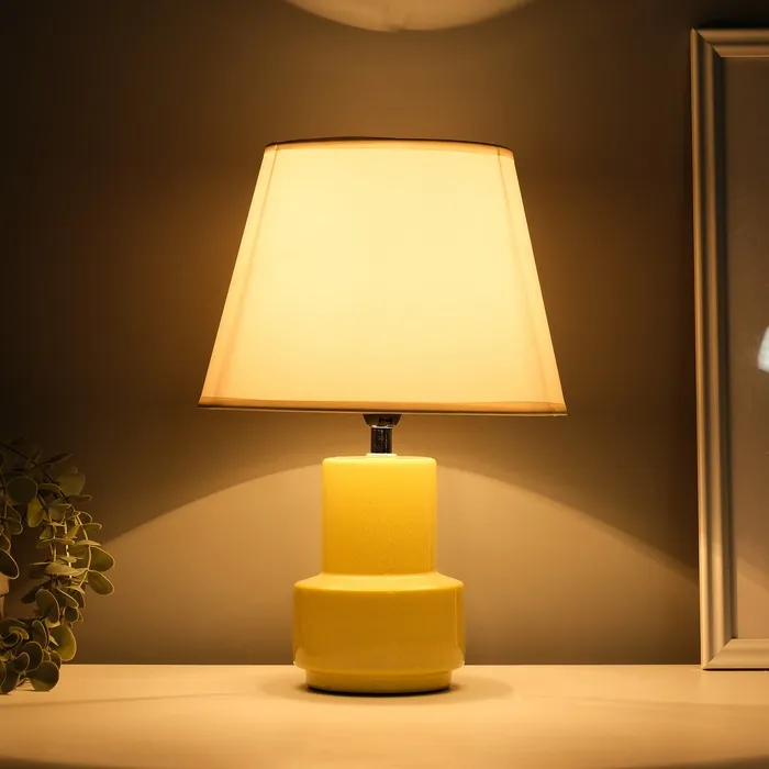 - Желтый цвет основания и бежевый плафон легко вписываются в различные стили интерьера.