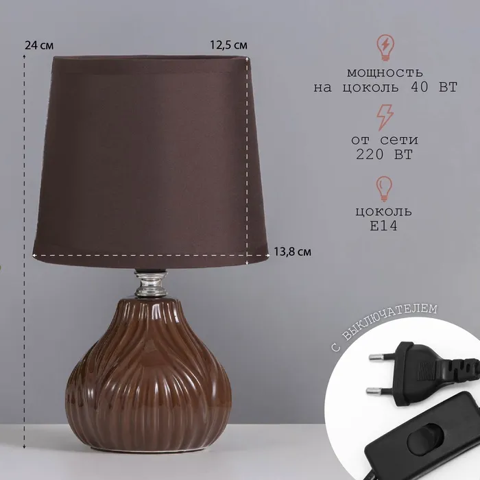Лампа настольная «Уго» 1×40 Вт Е14 коричневый 14.5×14.5×24 см — Характеристики