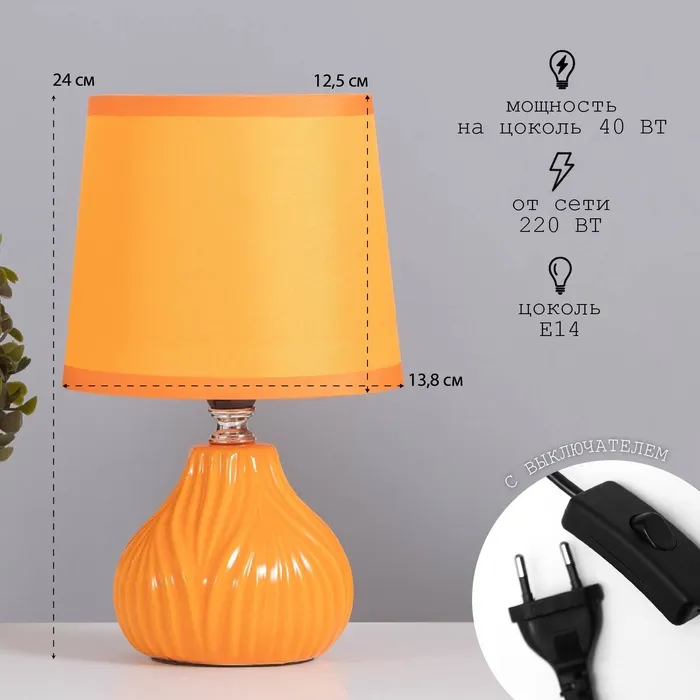 Лампа настольная «Уго» 1×40 Вт Е14 оранжевый 14.5×14.5×24 см — Характеристики