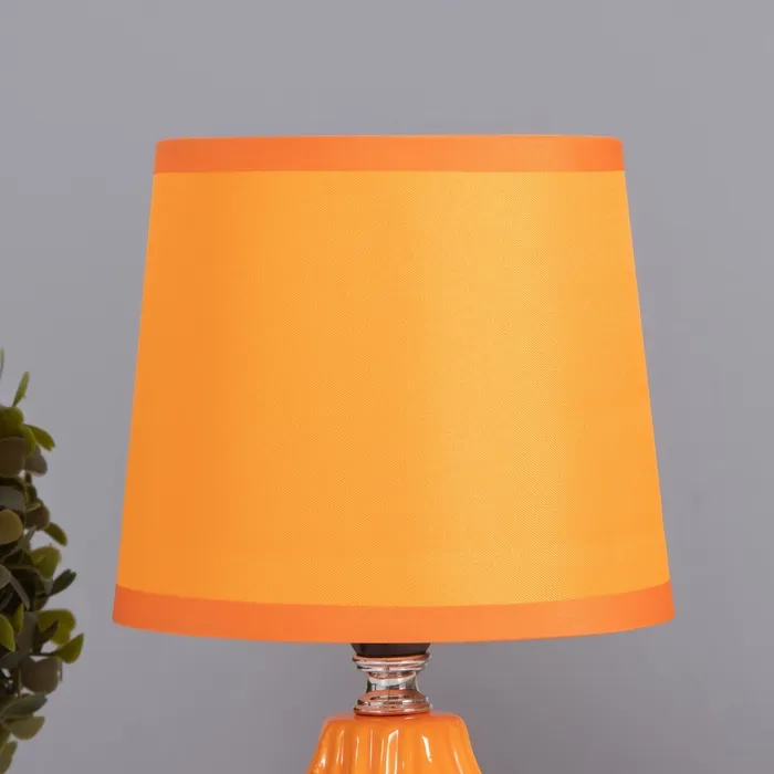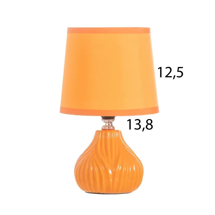 Эта настольная лампа в ярком оранжевом цвете станет отличным дополнением вашего интерьера. Благодаря компактным размерам, она легко разместится на столе, тумбочке или полке, добавляя живости и уюта в любое пространство. Керамическое основание и текстильный абажур в форме капли создают атмосферу тепла и комфорта.