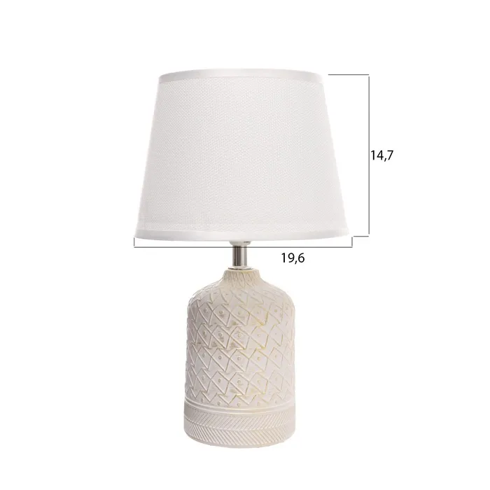 Эта настольная лампа в белом и золотом цветах станет стильным акцентом вашего интерьера. С высотой 34 см и размерами 20×20 см, она идеально впишется в любое пространство — от рабочего стола до уютной тумбочки. Керамическое основание и конусный абажур создают атмосферу элегантности и комфорта.