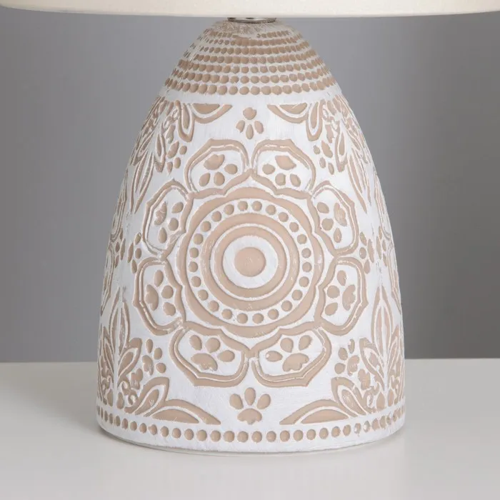 Эта настольная лампа станет отличным дополнением вашего интерьера, создавая мягкое и приятное освещение. Белоснежное керамическое основание и трапециевидный абажур в светлых тонах придадут вашему пространству изысканный вид.