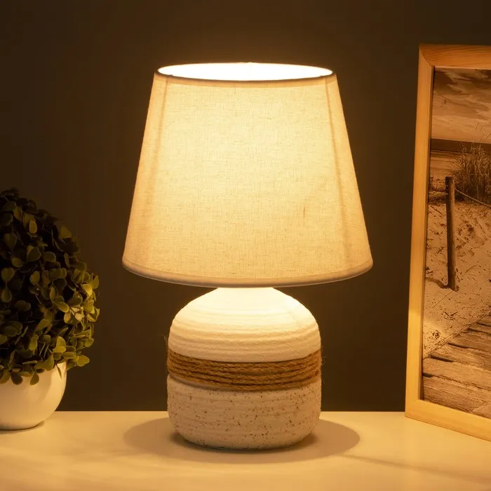 - Текстильный абажур в светлых тонах мягко рассеивает свет, создавая приятную атмосферу.