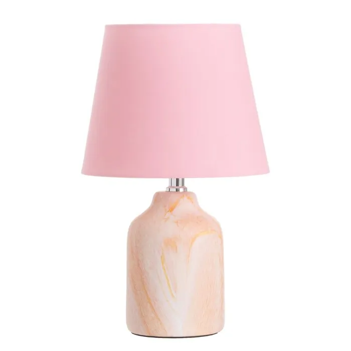 - Конусный абажур из текстиля розового оттенка создает мягкое освещение, наполняя комнату комфортом.