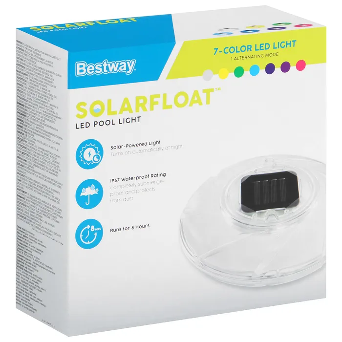 Плавающая лампа подойдёт для использования в бассейнах, фонтанах и прудах. Модель имеет водонепроницаемый корпус, её можно полностью погружать в воду. Лампа заряжается от солнечной батареи, вам не придётся менять аккумулятор.