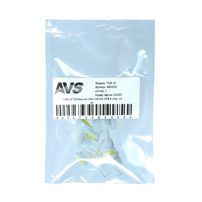 Лампа светодиодная AVS Т109-10 Т10, белый, W2.1×9.5d, COB 6 chip, 10 шт. — Характеристики