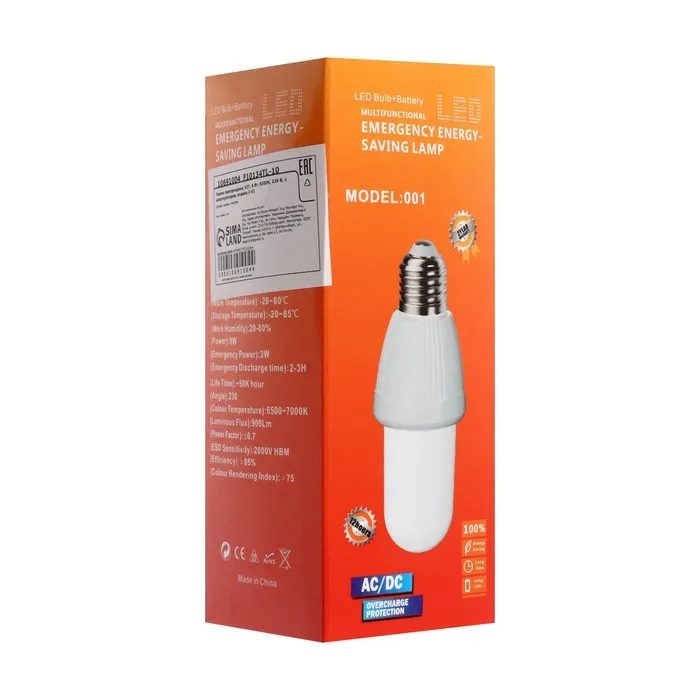 Лампа светодиодная, Е27, 6 Вт, 6500К, 220 В, с аккумулятором — Характеристики