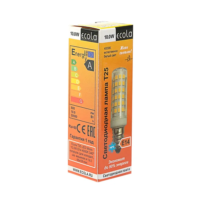 Лампа светодиодная Ecola, E14, T25, 10 Вт, 4000 K, 340°, для холодильников и швейных машин — Характеристики