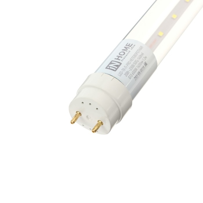 Лампа светодиодная IN HOME, G13, 20 Вт, 1620 Лм, 6500К, 1200 мм, прозрачная, свечение холодное белое