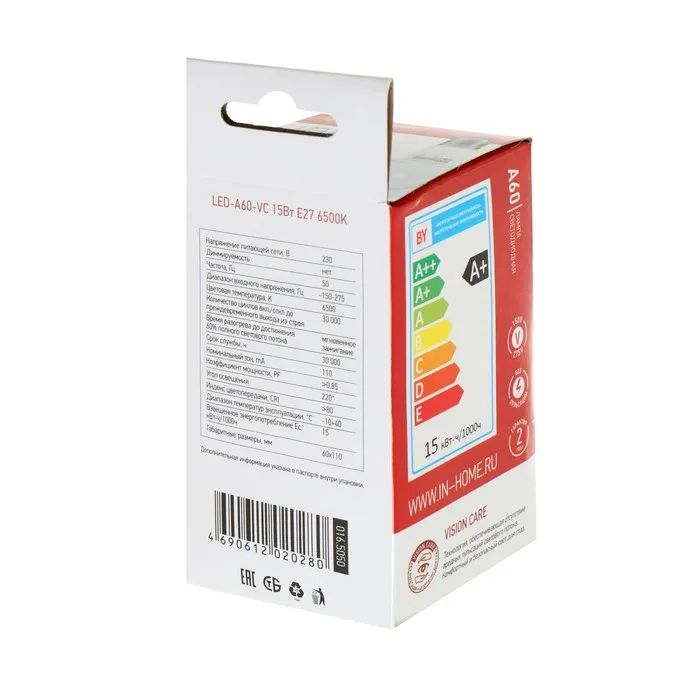 Ваш ребенок теряет зрение, делая уроки при искусственном освещении? Уникальная технология «VISION CARE» полностью исключает мерцание и вредные пульсации, поэтому лампы серии LED-VC не вызывают раздражение и усталость глаз, а значит безопасны для здоровья. При этом они максимально экономичны – по сравнению с лампами накаливания, вы заплатите за освещение в 9-10 раз меньше! Лампа классической грушевидной формы подойдет для всех светильников со стандартным цоколем Е27.
