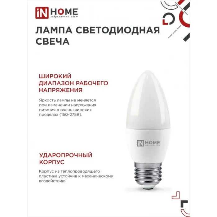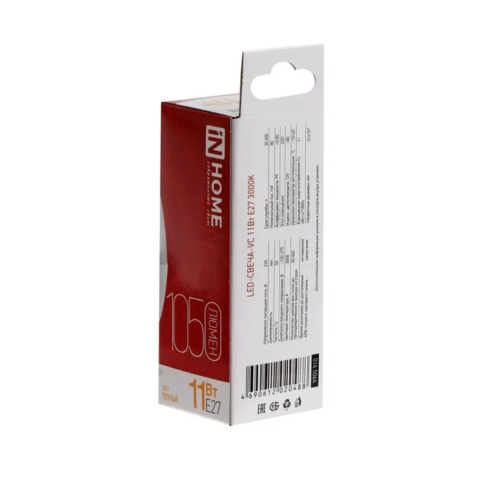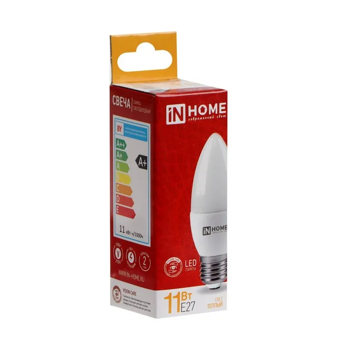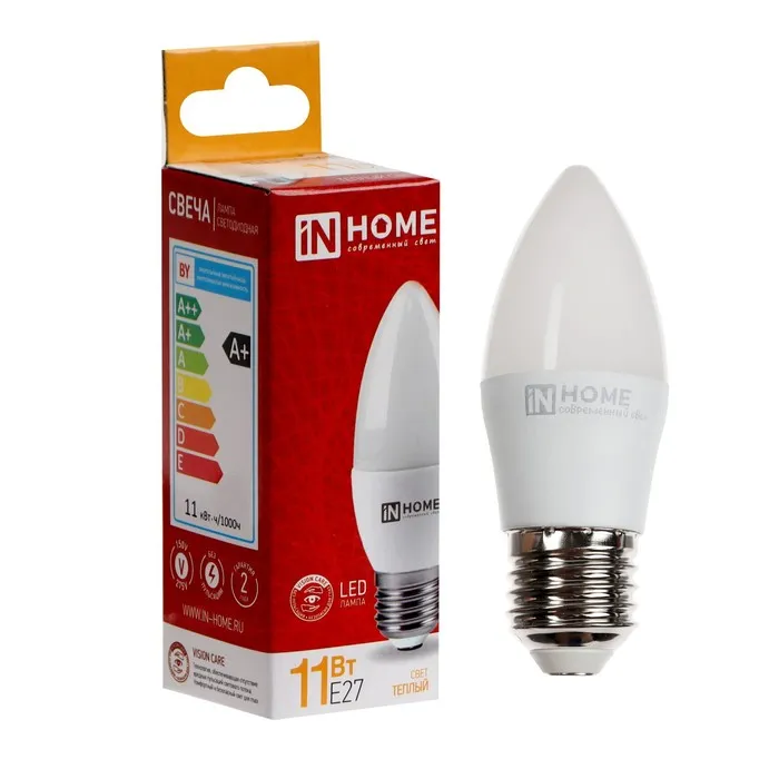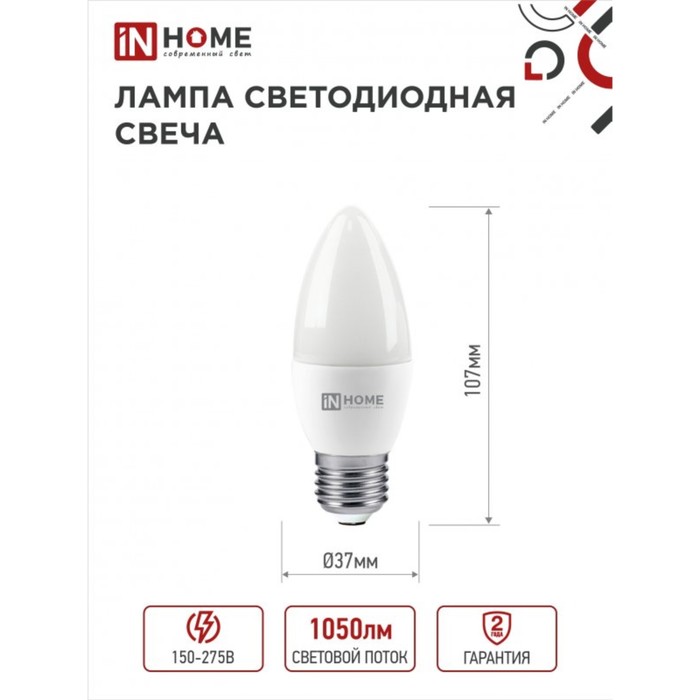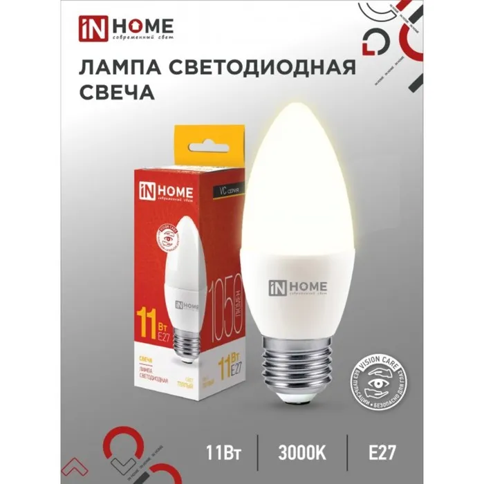 Лампа светодиодная IN HOME LED-СВЕЧА-VC, 11 Вт, 230 В, Е27, 3000 К, 1050 Лм — Характеристики