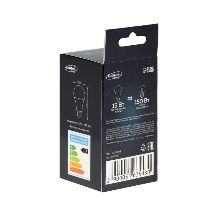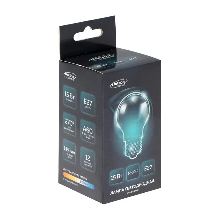 Лампа светодиодная Luazon Lighting, A60, 15 Вт, E27, 1350 Лм, 6500 К, холодный белый — Характеристики