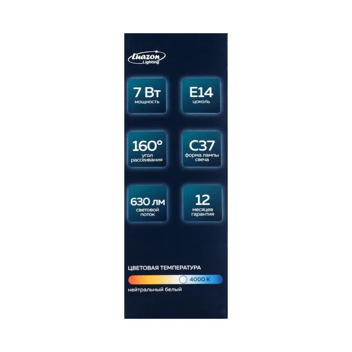Лампа светодиодная Luazon Lighting, C37, 7 Вт, E14, 630 Лм, 4000 К, дневной свет — Характеристики
