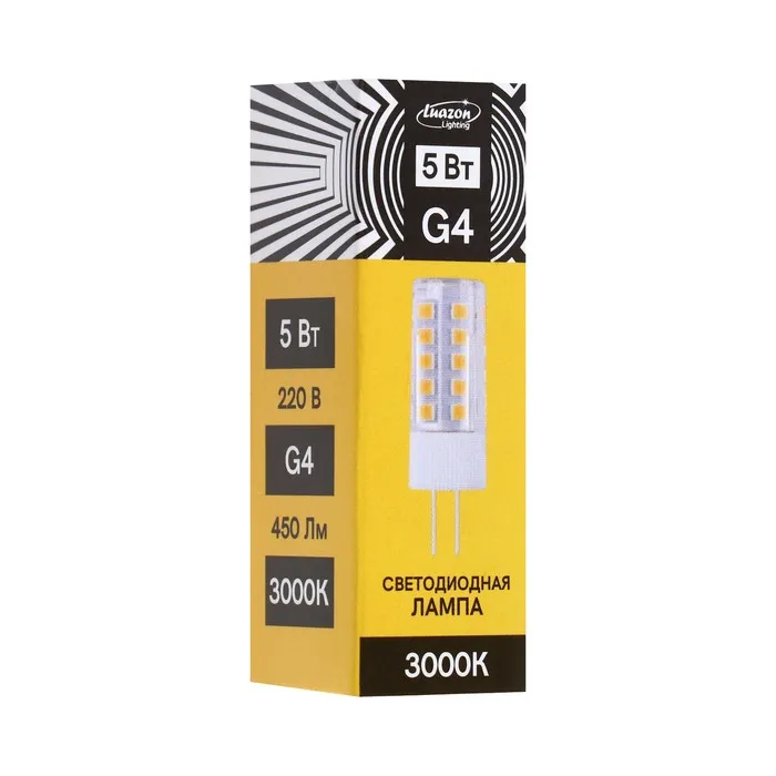 Лампа светодиодная Luazon Lighting, G4, 5 Вт, 220 В, 3000 K, 450 Лм, пластик — Характеристики