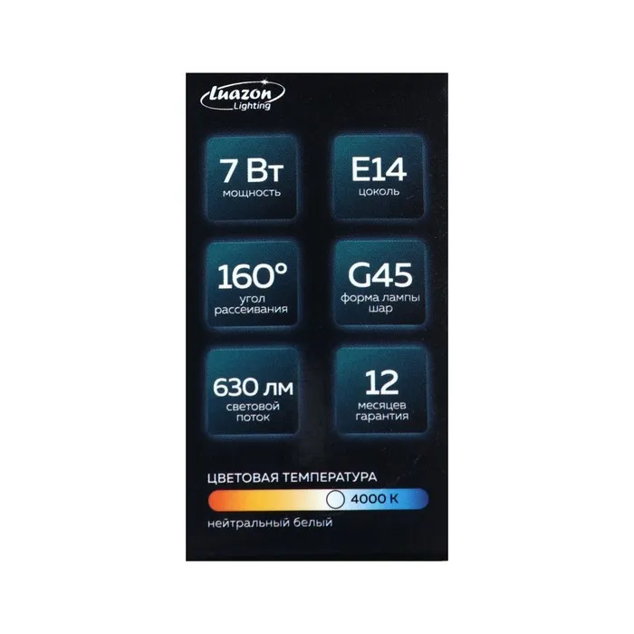 Лампа светодиодная Luazon Lighting, G45, 7 Вт, E14, 630 Лм, 4000 К, дневной свет — Характеристики