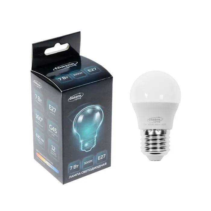 Лампа светодиодная Luazon Lighting, G45, 7 Вт, E27, 630 Лм, 3000 К, теплый белый — Характеристики
