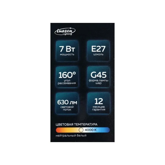 Лампа светодиодная Luazon Lighting, G45, 7 Вт, E27, 630 Лм, 4000 К, дневной свет — Характеристики
